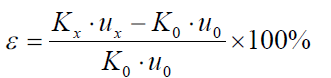 檢定前,應(yīng)對(duì)使用的數(shù)字電壓表清零,以消除數(shù)字電壓表偏置電流的影響。當(dāng)加在被 檢直流電壓互感器的直流高壓為檢定點(diǎn)電壓時(shí),用數(shù)字電壓表測(cè)量標(biāo)準(zhǔn)直流高壓分壓器的 二次輸出電壓 u0 和被測(cè)直流互感器的二次輸出電壓 ux。被檢直流電壓互感器的基本誤差按下式計(jì)算: