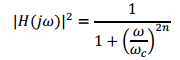 其中,n為濾波器的階數,為低通濾波器的截止頻率。該濾波器具有一些特殊的性質: