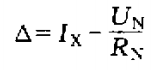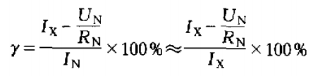 設(shè)測(cè)得標(biāo)準(zhǔn)電阻兩端電壓實(shí)際值為UN,標(biāo)準(zhǔn)電阻實(shí)際值為RN,被檢表顯示值為IX,則回路電流實(shí)際值為:
