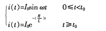 式2中,I0為電流最大值;T為電流脈沖底寬。放電電流曲線見下圖3。t<t0負載電流呈正弦變化;t≥t0負載電流呈指數(shù)變化。