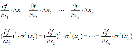 即各分項對測量誤差的總的作用是相同的,但給分配的誤差在數(shù)值上是不相同即: